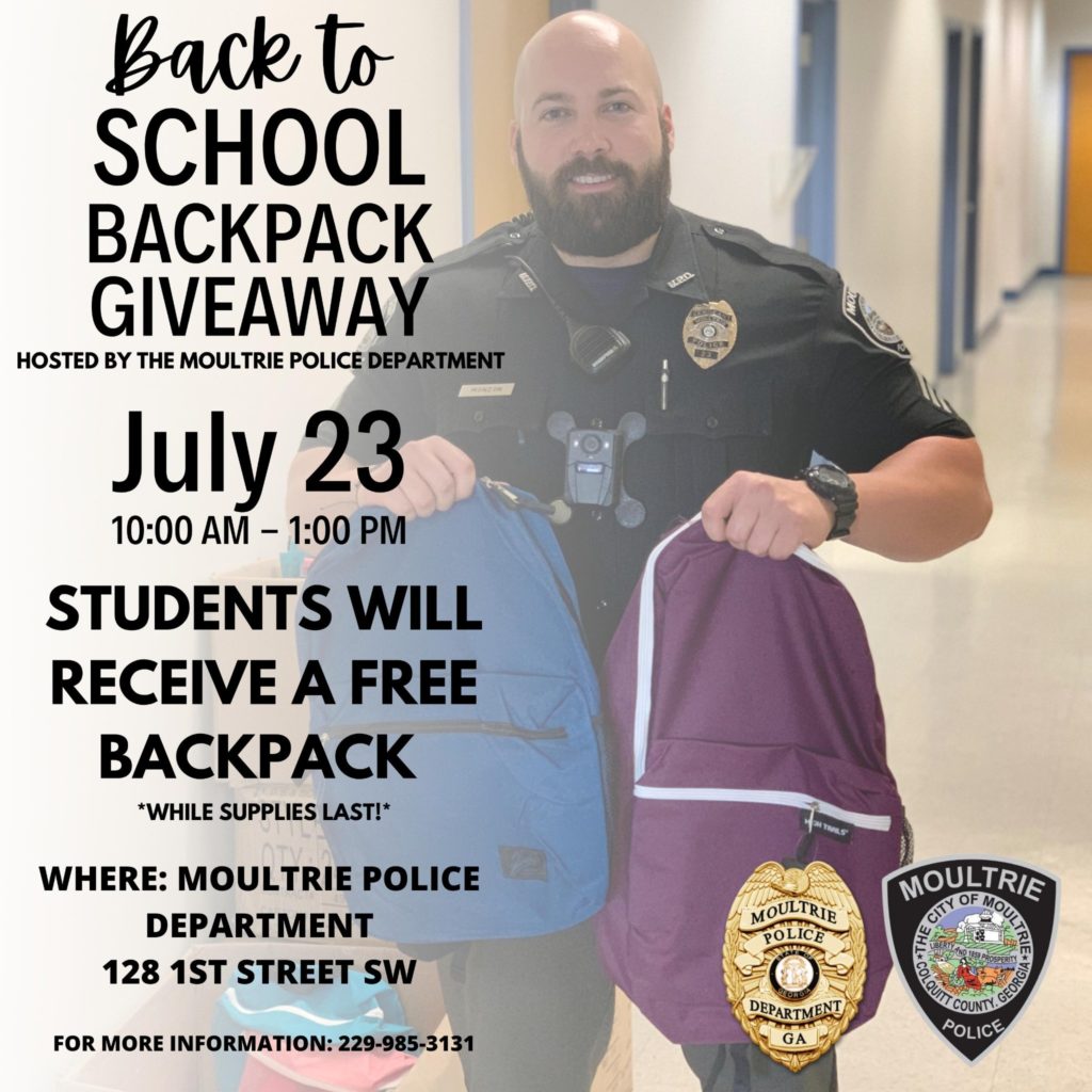 Moultrie Police Department Back To School Backpack Giveaway